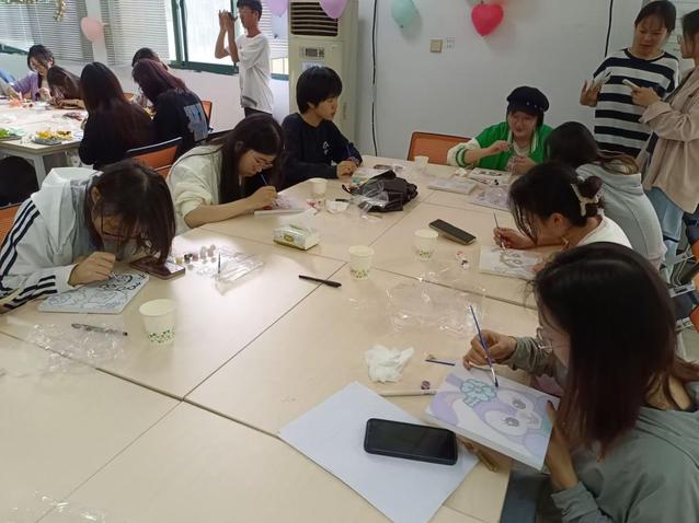 活动分三个板块:个性手机壳DIY活动、留住春天·干花团扇、生命律动·数字油画。在主持人介绍活动的意义与内容后,参与者便可自行发挥进行创作。同学们各自发挥想象力,选择自己感兴趣的主题,进行色彩的搭配和设计,相互欣赏彼此的作品,在交流沟通中放松身心,减轻学习和生活的压力。