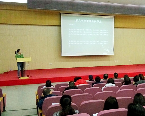 谭志国就毕业生毕业论文撰写时间规划、毕业论文答辩安排、毕业学分清理核算等一系列员工利益密切相关的重要问题进行一一梳理,提示大家合理安排好时间,将毕业论文撰写与毕业实习安排合理规划,做到“两不误”。