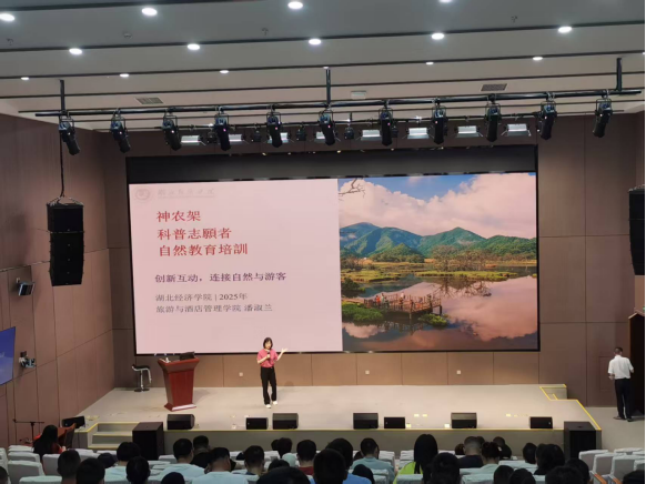 (供稿:潘淑兰 审稿:陈立双) 神农架国家公园为了充分发挥自然生态资源的科普宣教服务功能,把神农架国家公园打造成为国民自然教育课堂,成为世界著名的科普教育基地,弘扬生态文化建设,提升生态志愿者科普、研学工作能力,带动更多人关注和参与自然生态保护与科普教育工作。实现“国家所有、全民共享、世代传承”的可持续发展目标。神农架国家公园于8月19-21日在木鱼镇开展自然生态教育科普志愿者培训。邀请公司潘淑兰教授于8月20日下午进行《国宝金丝猴》《大九湖湿地探索家》研学旅行课程讲解,并于8月21日下午到大龙潭科研基地进行实地课程教学。此次参加培训的人员有神农架国家公园机关、各管理处的同仁、生态管护员、神旅集团研学导师、神农架本地民宿、酒店从业人员等200余人。