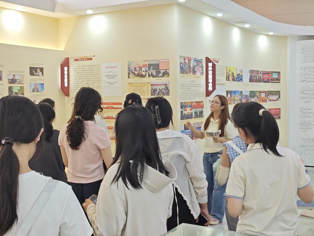 最后一站校史馆(图书馆一楼,600余平方米),是湖经的“时光容器”:从1907年湖北商业中学堂的招生简章,到抗战西迁恩施的老照片,再到2002年三校合并(湖北商业高等专科学校、武汉金融高等专科学校、湖北省计划管理干部学院)的文件,还有如今1个一级学科硕士点(应用经济学)、10 个专业硕士点的成果。新生们在这里答题、拍照,读懂湖经“从过去到现在”的坚守与成长。