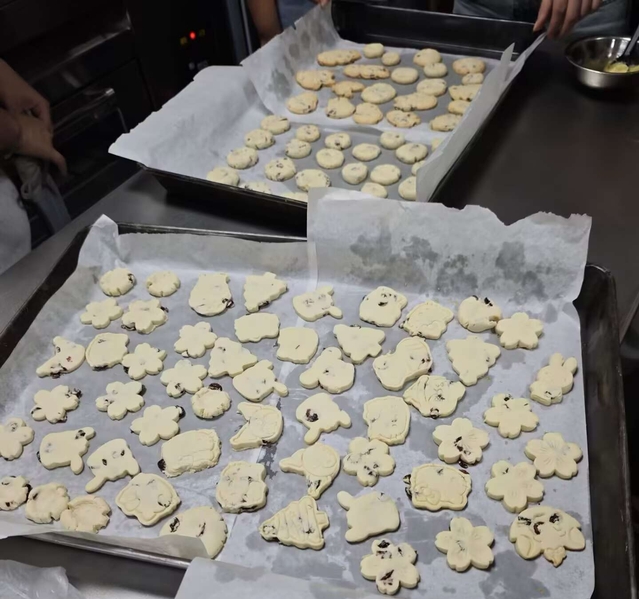 当烤箱铃声响起,大家满怀期待地取出自己的作品——眼前的饼干形态各异,有的圆润可爱,有的则创意“抽象”,边缘还带着些许焦香。同学们互相展示、点评着彼此的“独家限量款”,实训楼里充满了轻松的笑声。这份亲手创造的乐趣,远比成品的完美程度更让人感到满足和愉悦。他们纷纷表示,这次体验不仅有趣解压,更让大家对背后组织活动的烹饪与营养教育协会产生了浓厚的兴趣,希望能有机会参与该协会未来举办的更多活动。