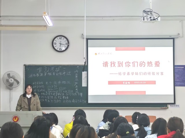交流会上,李庭瑞以“请找到你们的热爱”为主题,结合自身经历进行了真诚而深刻的分享。她从专业认知、大学规划到未来方向,为同学们“拨云见日”,让新生们更加清晰地理解上大学的意义与目标,缓解了初入校园的焦虑与迷茫。她强调,老员工活丰富多彩,但学习始终是第一要务,唯有在学习与娱乐之间保持平衡,才能实现真正的成长。