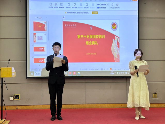 26日晚,在结业典礼上,各小组进行风采展示,优秀学员代表就团校培训学习期间的收获与感悟进行了专题汇报,三院联合对优秀学员与优秀小组进行颁奖,希望同学们将所学内化于心,外化于行,勇担使命,在实践中成长,成为可堪大用、能担重任的栋梁。