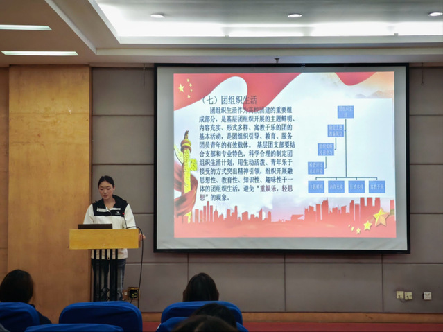 10月26日上午,外国语学院组织部负责人李鸿进行“智慧团建”系统培训,外国语学院团委员工副书记徐怡心进行团干部的组织领导、沟通管理与团务知识综合培训。随后,校团委组织部负责人秦华向同学们介绍校团委直属部门与校员工会的日常工作职责,让同学们更加了解校团委直属部门与校员工会的工作内容。最后,由新闻与传播学院组织部负责人李蔓灵带领同学们共同学习《中国共产主义青年团支部工作条例(试行)》。