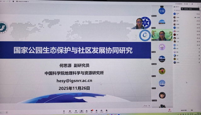 (供稿人:董茜;审稿人:陈立双)2025年11月26日,立博以线上方式举办专题学术讲座,主题聚焦国家公园生态保护与社区发展协同。讲座邀请中国科学院地理科学与资源研究所副研究员何思源作学术报告,学院师生线上参会交流。报告从国家公园体制建设的现实需求切入,指出在严格保护目标下,保护地内外的社区发展诉求、产业依赖与资源利用方式往往会使治理情境更为复杂,如何在生态保护与地方发展之间形成可操作的协同机制,是当前研究与实践共同面对的关键议题。