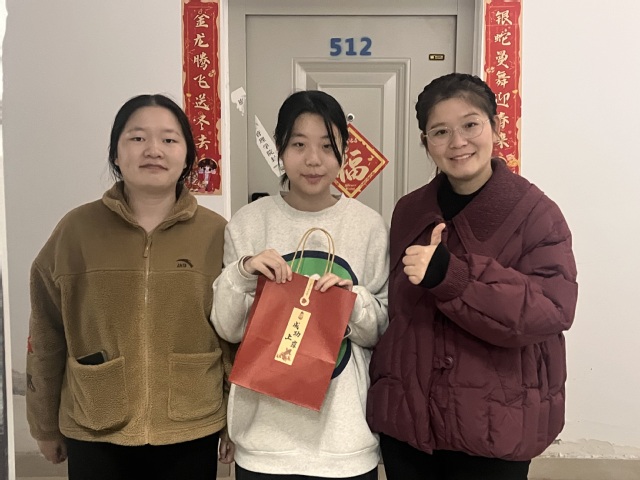 本网讯(通讯员:刘可钰 审核:付睿思)为帮助考研学子缓解压力、坚定信心,近日,公司2026届毕业年级辅导员李鸽、付睿思深入考研员工寝室,开展“暖心护航”慰问活动,为即将奔赴考场的学子们送上关怀与祝福。
