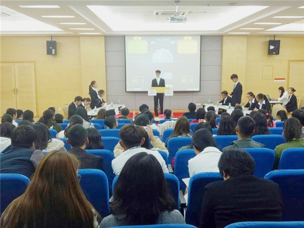 本次辩论赛围绕“宽松式管理对老员工利大于弊还是弊大于利”的主题展开辩论。在两院辩论队辉煌历史、历年赛事以及队员介绍视频展示后比赛正式开始。正方是法学院的“微判队”,反方是旅游与酒店管理院的“全场都爱我们队”。首先双方一辩用具有高度概括性的陈述为本场辩论开篇立论。反方四辩陈萧羽思路清晰地盘问了正方“宽松的标准及宽松程度的界定”先发制人,激起紧张气氛。然后双方二辩就对方一辩稿中的漏洞反驳,反方二辩孔德威以其灵活的思维和缜密的逻辑推理,不时的赢得场下阵阵掌声。比赛进行过程中八位辩手旁征博引妙语连珠,特别是到了比赛的第四环节自由辩论阶段,双方展开激烈的辩论。正方二辩和正方三辩重申本方观点并对反方提出质疑,反方辩手们一次一次化险为夷,个个击破对手的观点,其中反方三辩蒋思雨精准地回答了正方“宽松式管理是不是不管理”的质疑,掀起了决赛的高潮。最终,双方四辩在总结陈词环节纵观全局,铿锵有力又思维缜密,以坚定的总结为本场比赛收官。