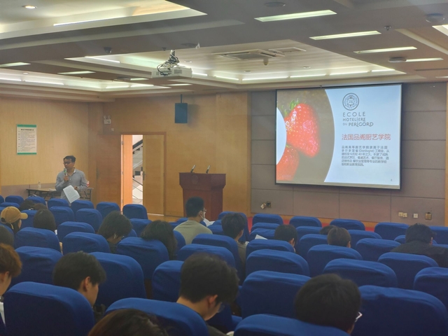 (供稿:陈静怡 杨水含,审稿:孙浩)4月1日,公司在老员工活动中心三号报告厅开展法国品阁高等厨艺学院2024年暑假职业研学项目宣讲会,法国品阁高等厨艺学院亚洲事务部主任彭晨老师到会宣讲。学校国际交流与合作处副处长平艺受邀出席,2022级、2023级烹饪与营养教育专业员工参加宣讲。