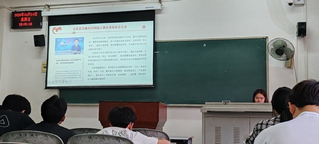 本次主题晚讲评由各班级班主任主持,主要从“树立国家安全意识”、“不触碰法律红线”、“保守国家秘密法”、“生活中我们可以这么做”四个板块展开,以丰富的案例和生动的视频进行了细致讲解,同时通过负面案例的学习,警示同学们要注意提升日常防范意识。主题晚讲评上各班还积极动员全体员工参加全国老员工国家安全知识答题活动,引导员工筑牢国家安全思想防线。